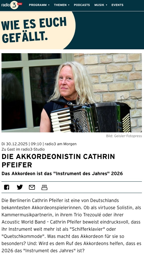 Hier kann man das Interview auf Deutschlandradio zum 20 jährigen nachhören: http://www.deutschlandradiokultur.de/cathrin-pfeifer-meisterin-des-akkordeons.2177.de.html?dram:article_id=304456